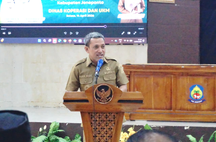 Jeneponto, 14 April 2026 — Bupati Jeneponto, H. Paris Yasir, SE., MM secara resmi membuka kegiatan Verifikasi dan Pemutakhiran Data Usaha Kecil dan Menengah (UKM) Tahun 2026 yang berlangsung di Ruang Pola Kantor Bupati Jeneponto, Selasa (14/4).