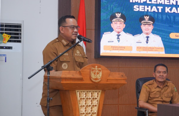 Bupati Luwu, Patahudding, membuka Rapat Koordinasi Penguatan Forum dan Implementasi Kabupaten Sehat Luwu di Aula Rujab Bupati Luwu, Senin (20/4/2026).