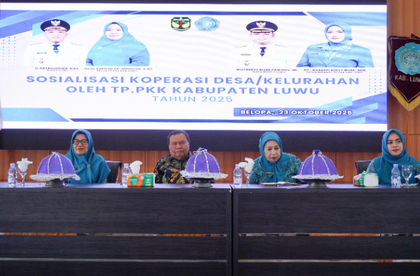 Sekretaris Daerah Kabupaten Luwu, Drs. H. Sulaiman, MM, secara resmi membuka kegiatan Sosialisasi Koperasi Desa/Kelurahan Tim Penggerak PKK Kabupaten Luwu yang dilaksanakan di aula Andi Kambo, Kompleks Perkantoran Bupati Luwu, Kamis (23/10/2025).